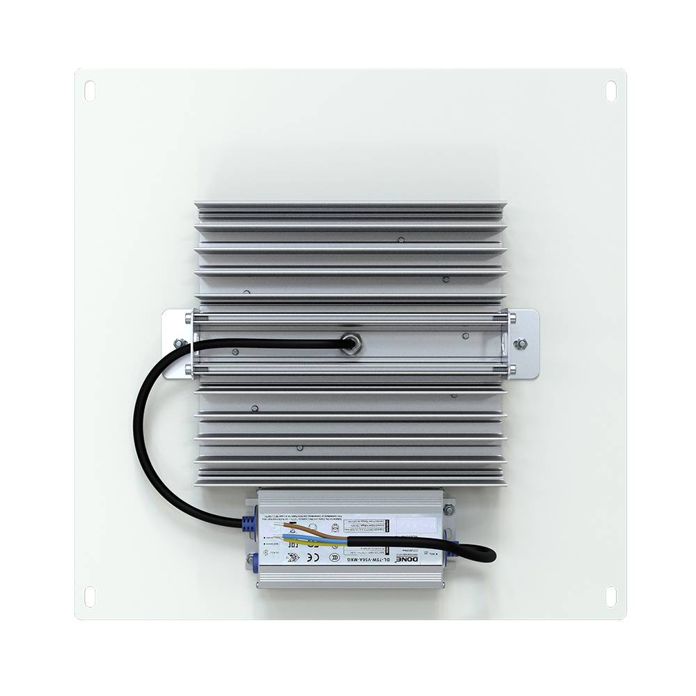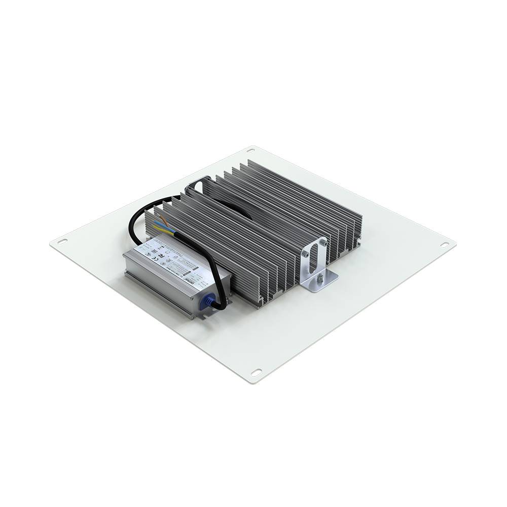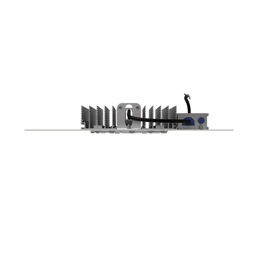 Источник питания расположен снаружи рядом с корпусом, на стальной пластине. Он имеет металлический корпус, который залит теплопроводящим электроизоляционным компаундом. Это снижает степень нагрева электронных компонентов источника питания и положительно отражается на стабильности и продолжительности работы светильника. Кроме того, источник питания эффективно защищен от возникающих помех и импульсов высокой энергии в сети (до 12 кВ). <br />