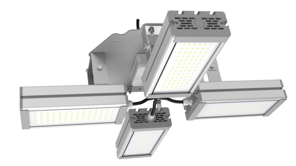Подвесные промышленные светильники класса High-Bay с креплением на трос в 1 точке. Защита от 380В. Каждая секция имеет регулировку наклона.