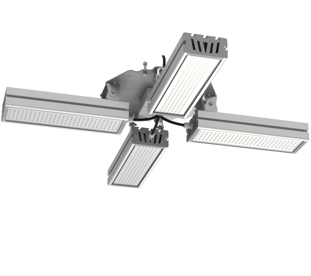 Подвесные промышленные светильники класса High-Bay с креплением на трос в 1 точке. Защита от 380В. Каждая секция имеет регулировку наклона.