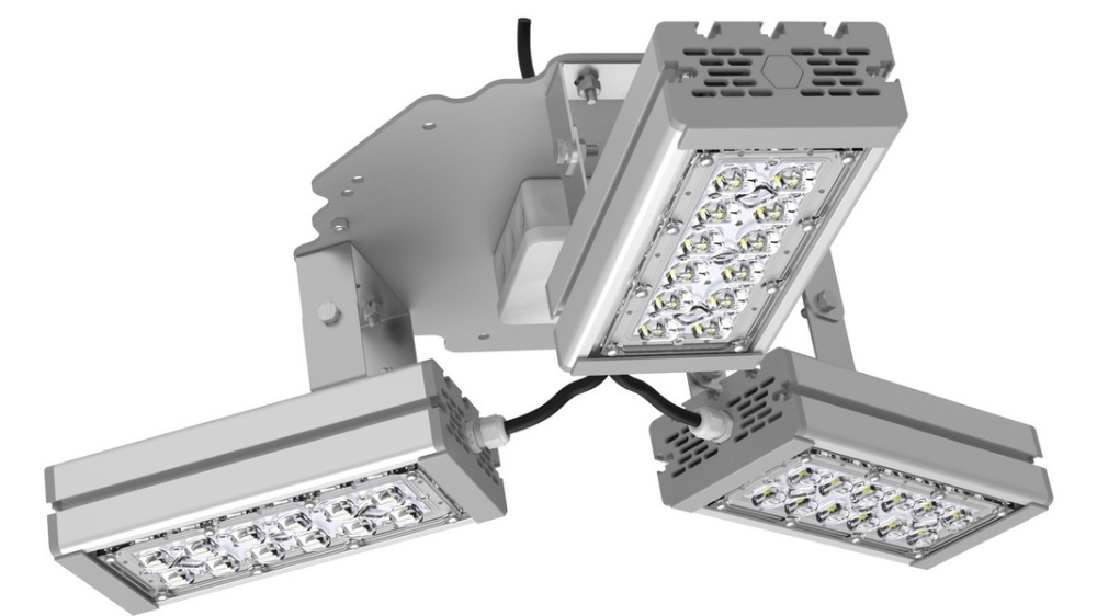 Подвесные промышленные светильники класса High-Bay с креплением на трос в 1 точке. Защита от 380В. Каждая секция имеет регулировку наклона.