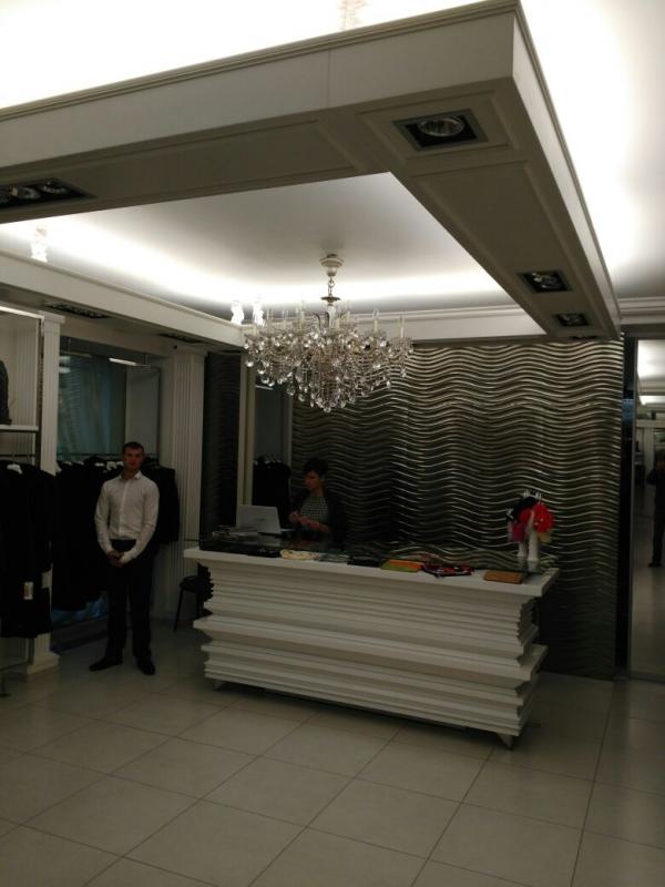 Штрабление, монтаж кабеля, распределительных и установочных коробок, розеток, выключателей, переключателей с нескольких мест, щита, автоматов, дифференциальных автоматов, счетчика, точечных светильников, экспозиционных светильников на шинопроводе, светильников подсветки витрин и манекенов, светильников отраженного света, светильников декоративной подсветки здания, тепловой завесы. Магазин находится на обслуживании.